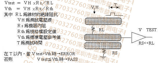 測試方法是線材的一個點對其它全部的點做絕緣測試,線材的每一個點都會一一做這樣的測試,其優(yōu)點是儀器能查出第一點的絕緣及解壓值且可以全部顯示,精準(zhǔn)度較高,缺點是測試速度較慢,操作時建議把模式三及此模式同時打開。