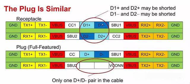 值得注意的是配置引腳,也就是A5B5CC12,用于連接的發現、配置和管理,對于插頭來說,只有一個CC,而對于插座來說有兩個:CC12.