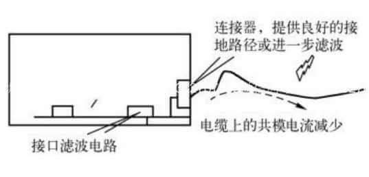 如果選擇了帶濾波的連接器,就要保證濾波連接器有良好的接地特性。特別是對(duì)于含有旁路電容的濾波連接器(大部分都含有),由于信號(hào)線中的大部分干擾被旁路到地上,因此在濾波器與地的接觸點(diǎn)上會(huì)有較大的干擾電流流過(guò)。如果濾波器與地的接觸阻抗較大,會(huì)在這個(gè)阻抗上產(chǎn)生較大的電壓降,導(dǎo)致嚴(yán)重的EMC問(wèn)題。